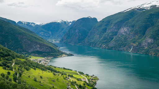 El más largo y profundo de Noruega, con más de 200 km de extensión, es conocido como el Rey de los Fiordos. Sus aguas cristalinas serpentean entre montañas de hasta 2.000 metros de altura. En sus orillas encontrarás pueblos pintorescos, iglesias de madera medievales y senderos naturales perfectos para explorar.